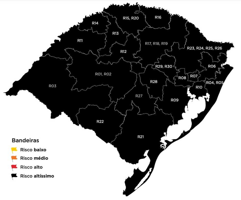 A divulgação das bandeiras definitivas, que ficam vigentes da 0h desta terça (1°/9) até as 23h59 da próxima segunda-feira (7/9), foi feita nesta segunda (31/8) por meio de material publicado no portal de notícias governo do Estado.