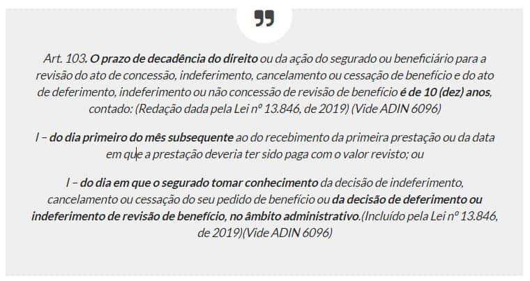 Confira o que diz o inciso I do art. 103 da Lei 8.213/1991: