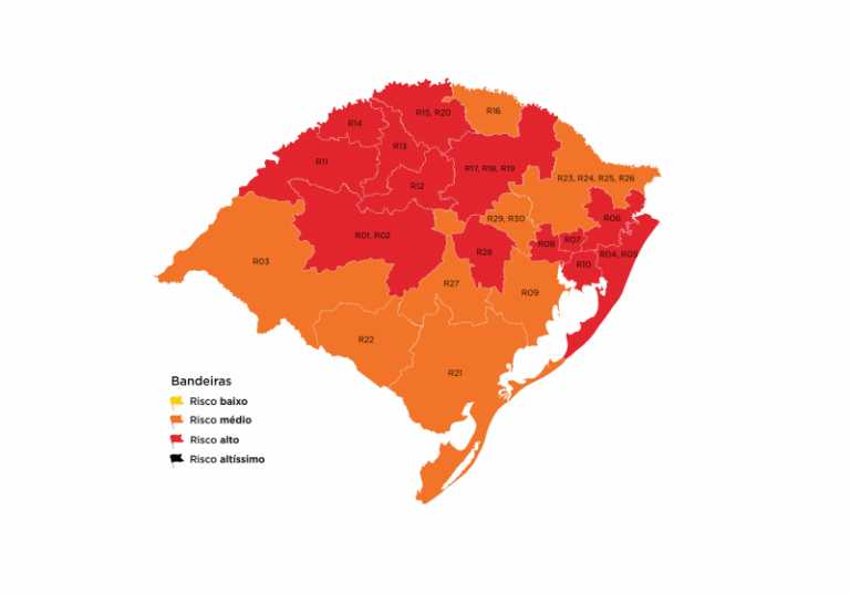 Santa Maria não faz parte da cogestão, portanto, deve seguir as regras estaduais de bandeira vermelha. Passo Fundo e outras 11 regiões que aderiram ao sistema de cogestão regional podem adotar os protocolos próprios compatíveis até o nível de restrição da bandeira laranja. E as seis regiões classificadas em laranja participantes do sistema de cogestão podem utilizar protocolos de bandeira amarela. Guaíba e Uruguaiana, que estão em laranja e não aderiram, devem seguir os protocolos estaduais de bandeira laranja.