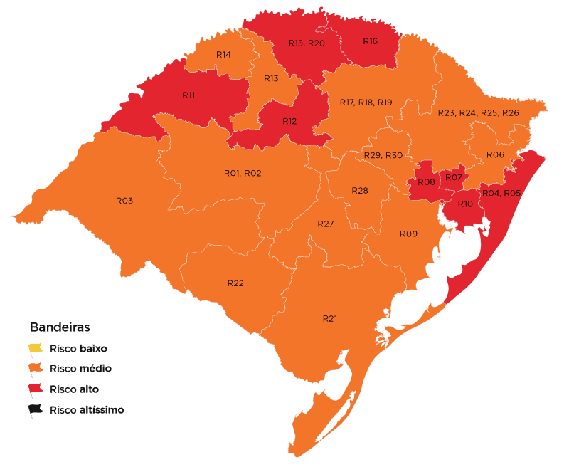 Pela primeira vez, Rio Grande do Sul tem mapa prévio totalmente em bandeira laranja